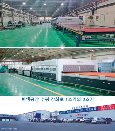평택 공장은 중국 MST 수평 강화로를 통해 최대 사이즈 3,000X6,000mm, 두께 4~19mm까지 강화유리를 생산하고 있으며, 화학 강화로(고온방식/저온방식)와 접합유리 생산라인(최대 사이즈 2,500×5,000mm)을 보유하고 있다. 또한, 이 회사는 1시간과 2시간용 비차열 방화유리창 시험성적서를 두께 및 용도별로 다수 보유하고 있다. 1시간용은 두께 6mm, 8mm, 10mm 슬라이딩, 프로젝트, 방화복층유리 등을 공급하고 있다. 2시간용은 두께 6mm, 8mm, 10mm, 12mm로 붕규산 유리(Borosilicate Glass)를 적용해 방화성능을 확보한 제품이다.