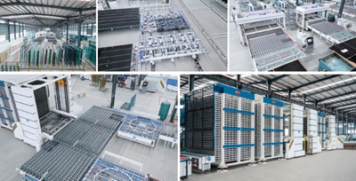 하나의 원판유리 창고가 3대의 재단 라인을 동시에 지원하며, 이 중 1대는 초대형 자동 재단 라인, 나머지 2대는 소형 유리 재단 전용으로 운영된다. 이를 통해 설비 투자비와 운영비용을 크게 절감했다.